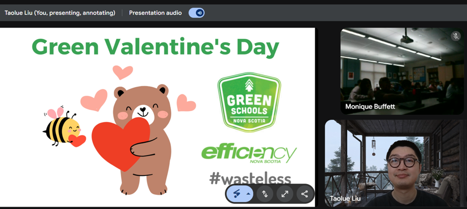 Back to newsThis week, Green Schools’ Engagement Officer Tao had the wonderful opportunity to connect with students across Nova Scotia for a special Valentine’s Craftinar. The session was filled with energy and creativity as we explored meaningful ways to celebrate holidays while staying eco-conscious and sustainable.