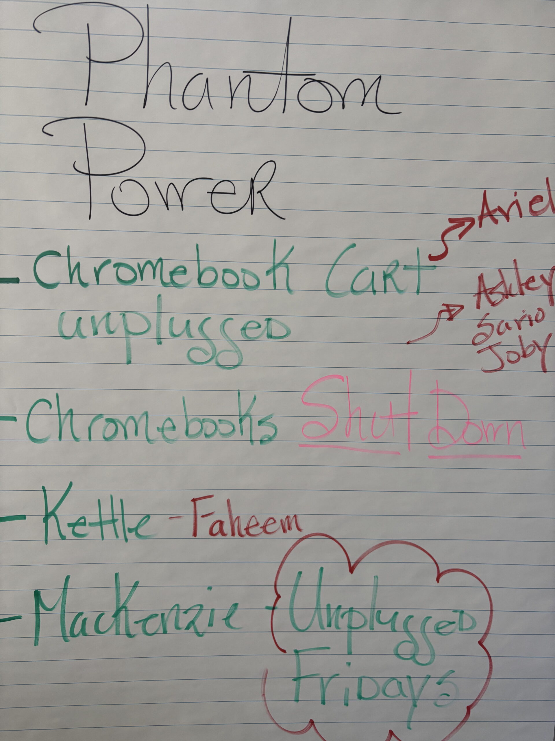 Week 3 – Phantom Power! Students learned about unplugging devices to save energy.